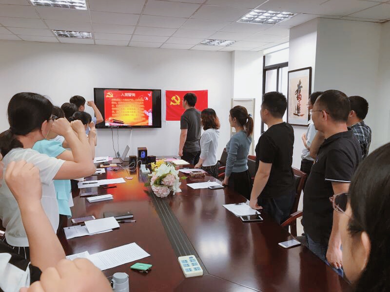 beat365唯一官方网站直属党支部副书记袁亮带领全体党员面向党旗又一次宣读入党誓词。那一句句激昂的文字,是对党员同志灵魂的再一次洗涤,再一次激起当初入党时的坚定信念和炽热之情。
