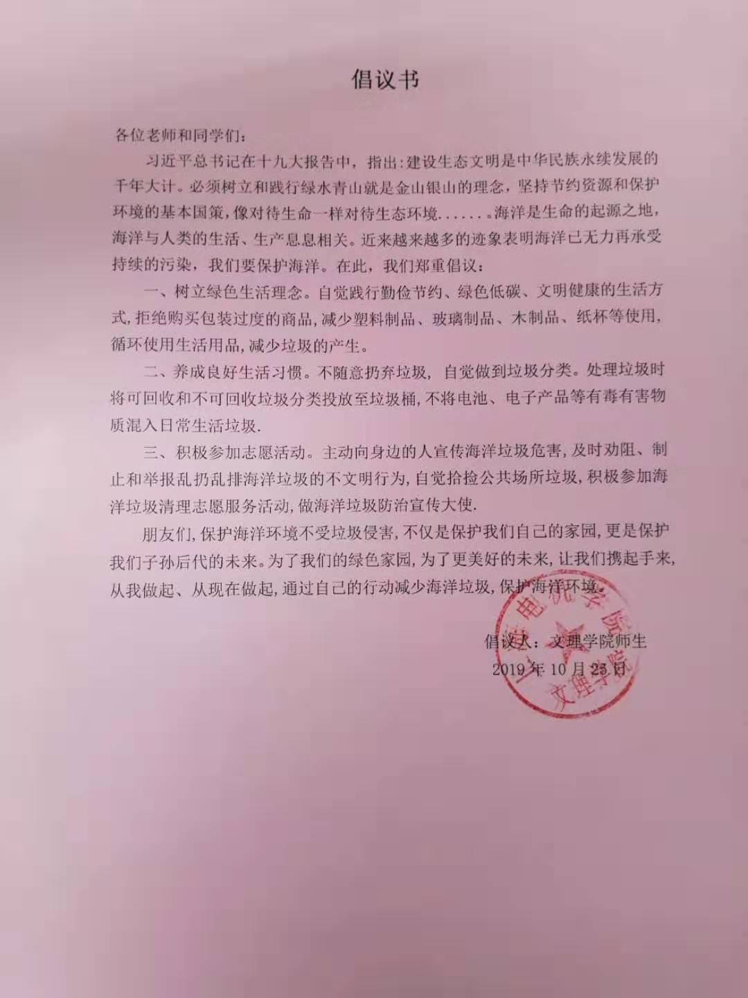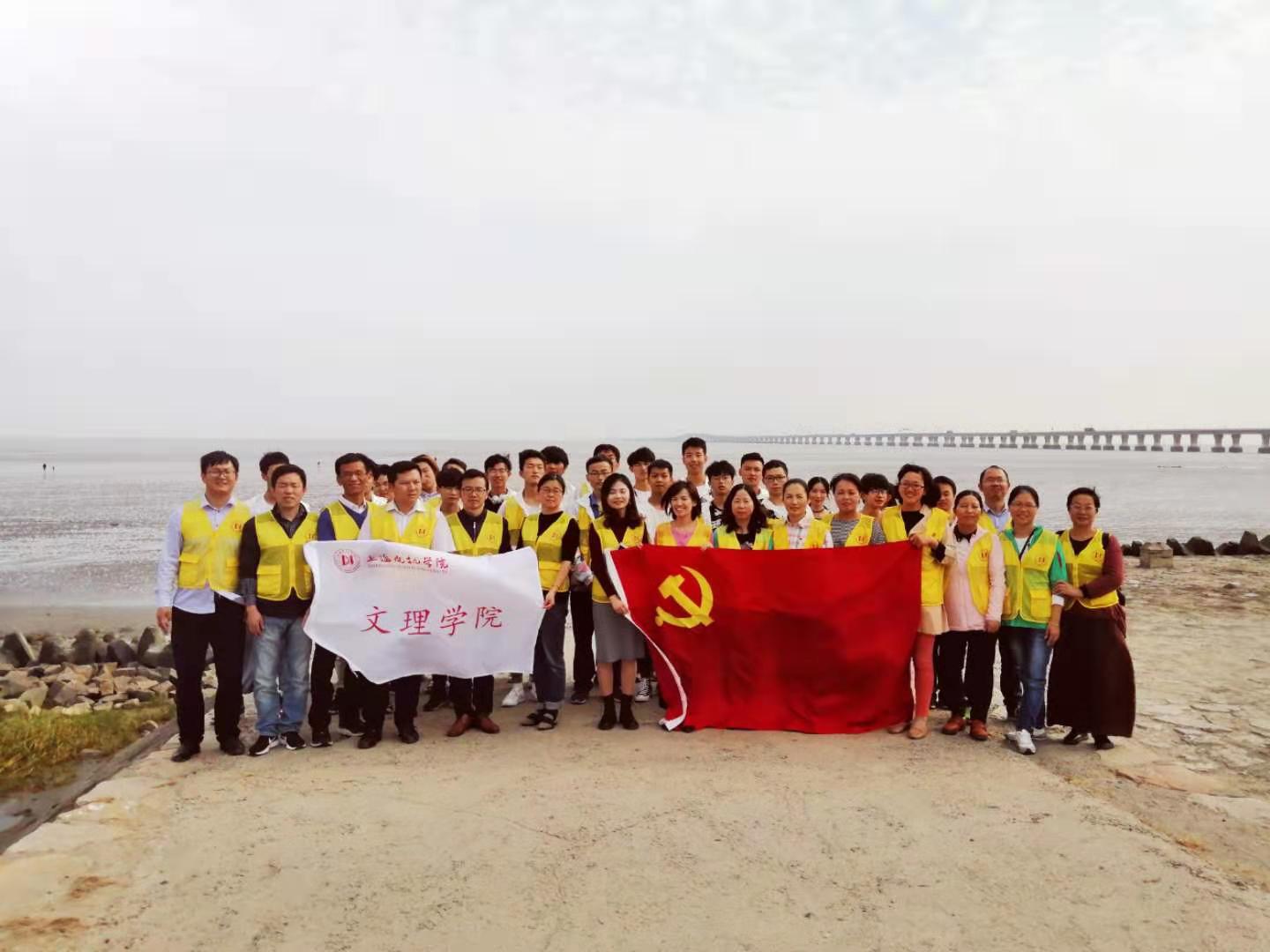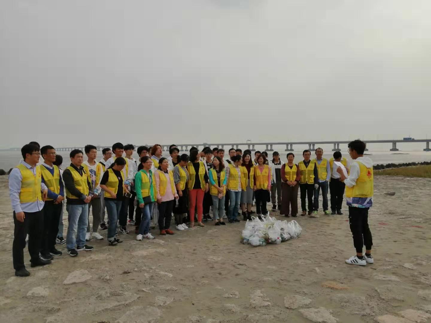 为深入开展“不忘初心、牢记使命”主题教育活动,10月25日下午,beat365唯一官方网站组织全体党团员开展了以“清洁海滩,倡导生态文明”为主题的环保志愿服务活动,为党团员提供了一次主题教育的实践机会。党员和团员青年们来到南汇新城“天空之境”清理海滩上的垃圾,并发起“减少海洋垃圾,保护海洋环境,建设生态文明”的倡议书。
