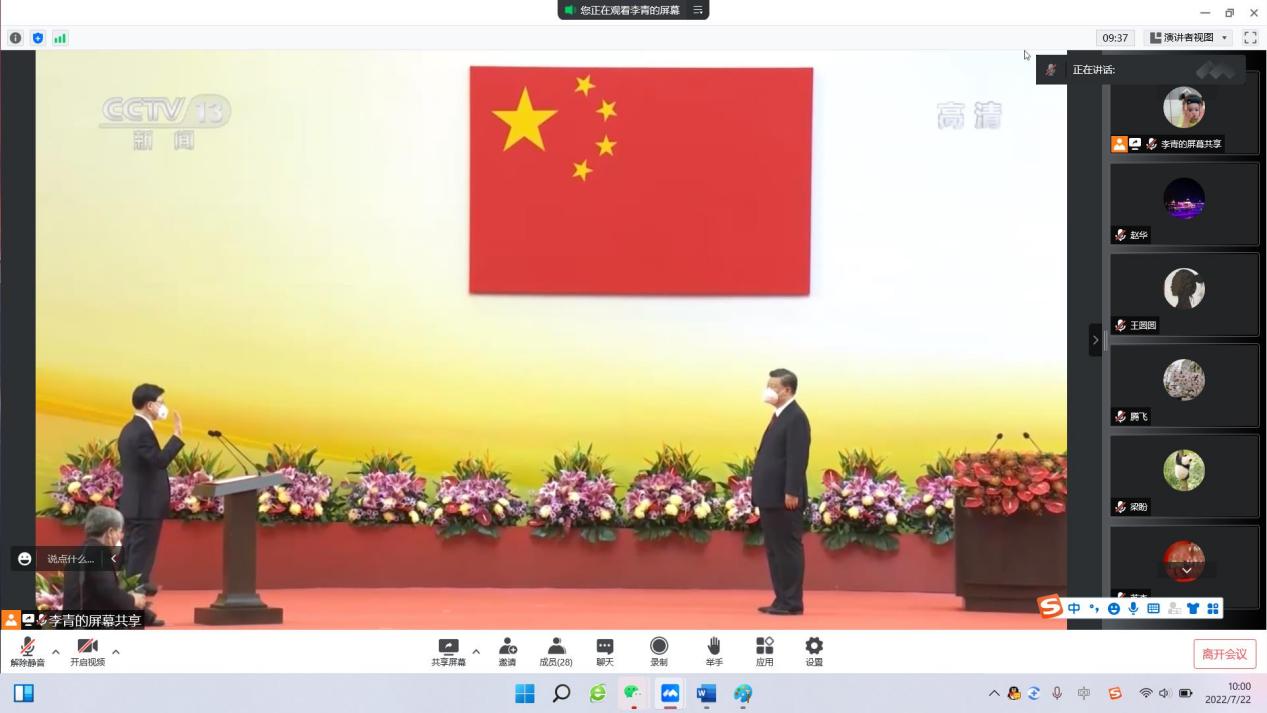 随后,党员们集中观看了习近平出席庆祝香港回归祖国25周年大会暨香港特别行政区第六届政府就职典礼视频。7月1日这一天也是中国共产党成立101周年的日子,习近平总书记的讲话不仅鼓舞人心,更对在香港全面实践“一国两制”促进社会繁荣稳定具有高瞻远瞩的指导作用。