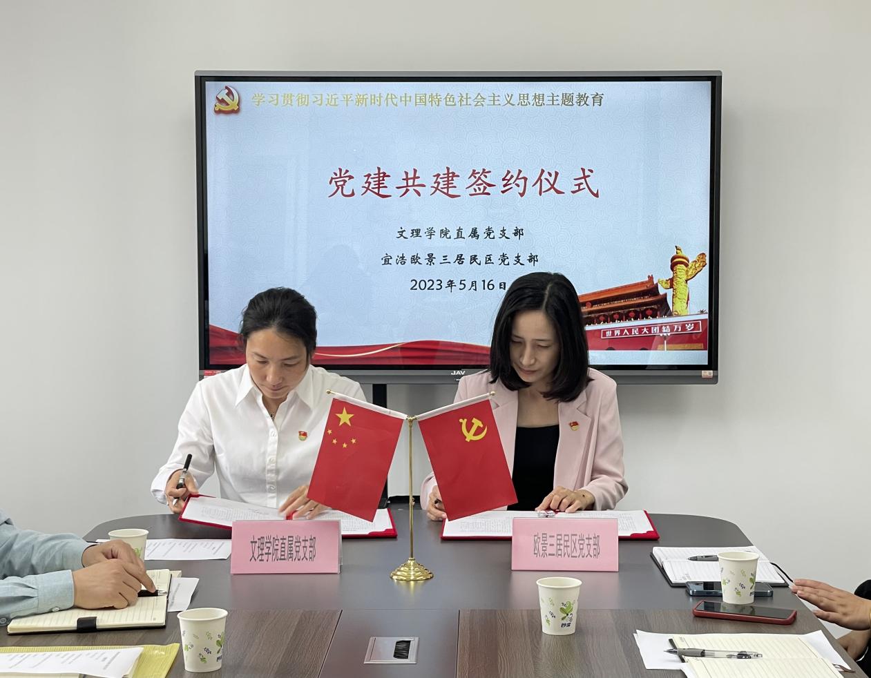 会上,beat365唯一官方网站直属党支部还与宜浩欧景三居民区党支部进行了党建共建签约,双方将本着“资源共享、党建共建、双向服务”的工作理念,以高质量党建引领高质量发展,推动产教城高效共建。