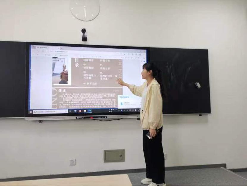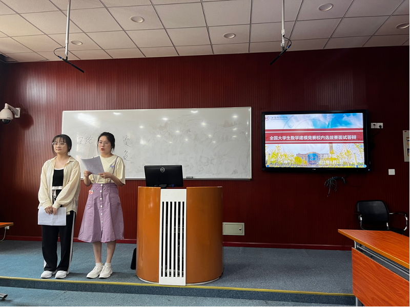 6月2日下午13:00,提交论文的队伍在B教201、203教室进行了面试答辩。面试答辩由学生阐述和评委提问点评环节构成。每组队员介绍各自在本次比赛中所选题目的结题思路以及建立的模型、算法以及得到的结果,评委老师现场提问,对答辩出色的队伍给予认可和赞扬,对答辩存在问题的队伍给予耐心的讲解、支持和鼓励。各个参赛队伍积极准备,整场答辩严肃认真又生动活泼,校内选拔赛圆满结束。经过评委现场提问和评分,最终评选出校级一等奖3队,二等奖9队,优胜奖6队,共18支获奖队伍。