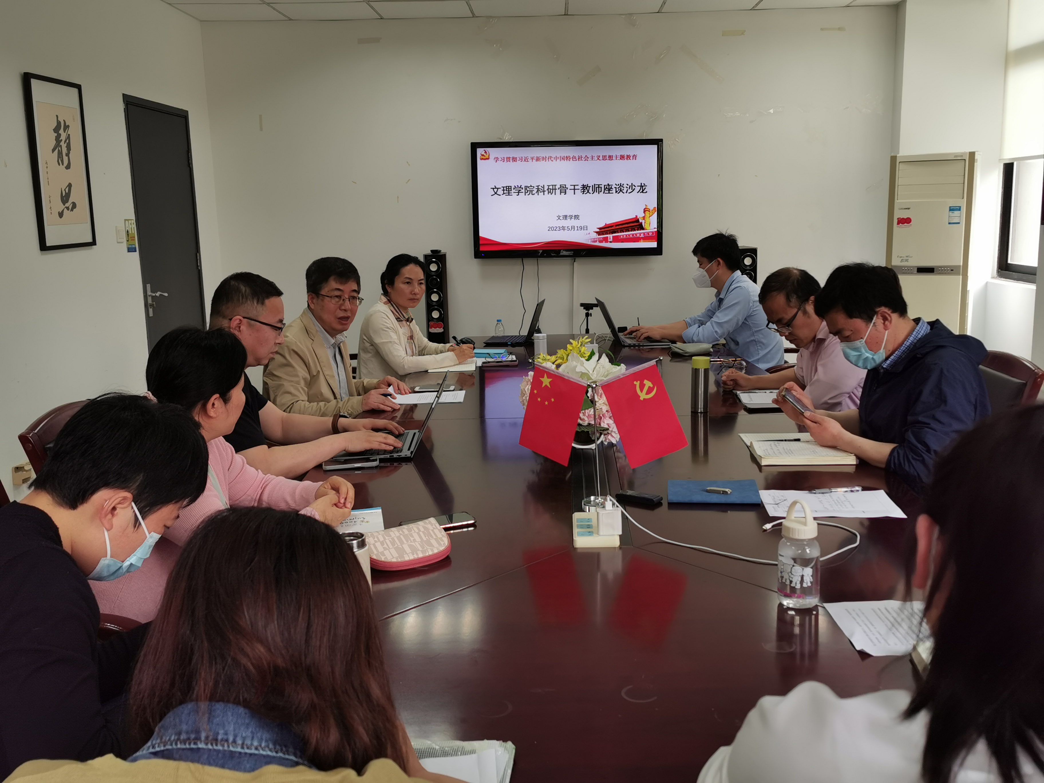 519日,文理学院召开科研骨干教师沙龙,沙龙由直属党支部书记康秀珠主持,院长朱泰英、学院科研骨干和商学院张富老师参加。