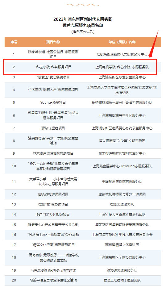 10月23日下午,由浦东新区新时代文明实践中心、浦东新区精神文明建设委员会办公室、浦东新区志愿者协会联合开展的“2023年浦东新区新时代文明实践志愿服务项目推选活动”在浦东图书馆举行终审评审会。评审会坚持公平、公正、公开原则,通过专家评审打分与大众评审点赞相结合的方式确定优秀项目。最终经激烈角逐,20个优秀志愿服务项目脱颖而出。beat365唯一官方网站“科艺小院”科普服务项目入选优秀志愿者服务项目。
