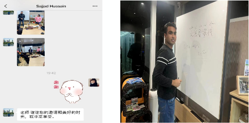 1214日(周四)晚,付晓培老师走入文理馨课栈,与国际学生共同开展首届“SDJU TALK 中文角”活动。此次活动,以“让我们再认识一下”为主题,软件工程、自动化等专业的国际学生纷纷报名参加。活动内容包括国际学生现场中文练习(使用中文在文理馨课栈一楼购买咖啡),“文理”“馨”“课栈”的内涵讲解及国际学生自我介绍、交流互动和活动合影等。活动结束后,多位国际学生表示此次活动令他们难忘,自己不仅在实践操作中用中文购买了咖啡,获得了满满的幸福感,还在文理馨课栈的咫尺天地之间,感受到了中国教师及中国学生的浓浓暖意,深刻理解了文理馨课栈之所以为“馨”的真正含义。他们表示,希望以后还能有机会参与此类活动,自己也将在毕业之后,介绍更多的本国学子,前来中国学习。