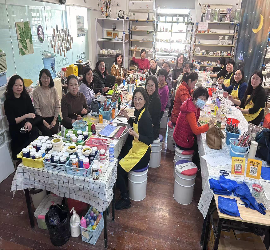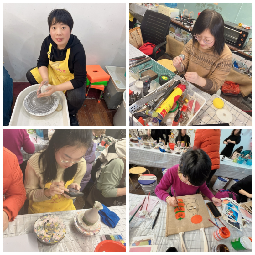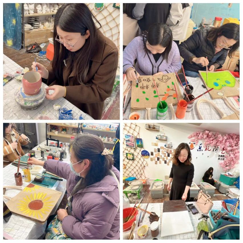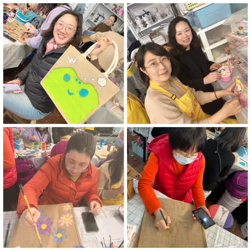 陶艺制作完成后,女教师们还体验了彩绘手提袋,整个陶艺室洋溢着大家的欢声笑语。