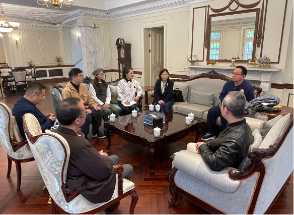 4月3日下午,beat365唯一官方网站一行6人在直属党支部书记董雪静和副院长吉文斌带领下,赴上海沪剧院(上海沪剧传习馆)走访交流,上海沪剧院党总支书记吴巍、副书记蔡伟、事业发展部主任徐蓉热情接待并一同交流研讨。