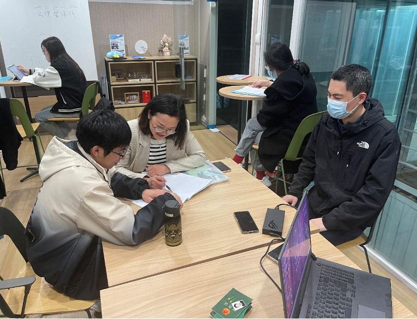 高等数学教研室林琳老师与崔汉哲老师进行数学课程学业辅导