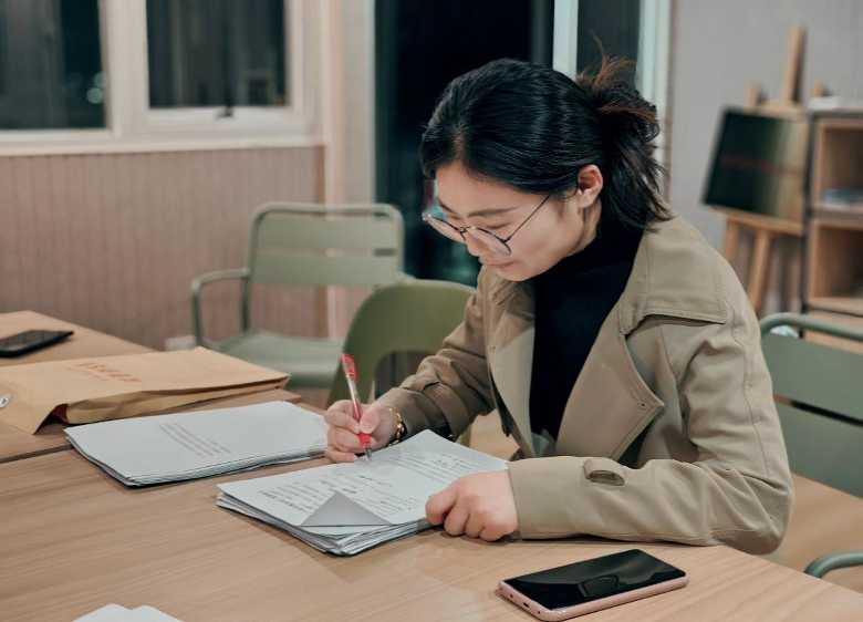 李青老师在批改学生作业