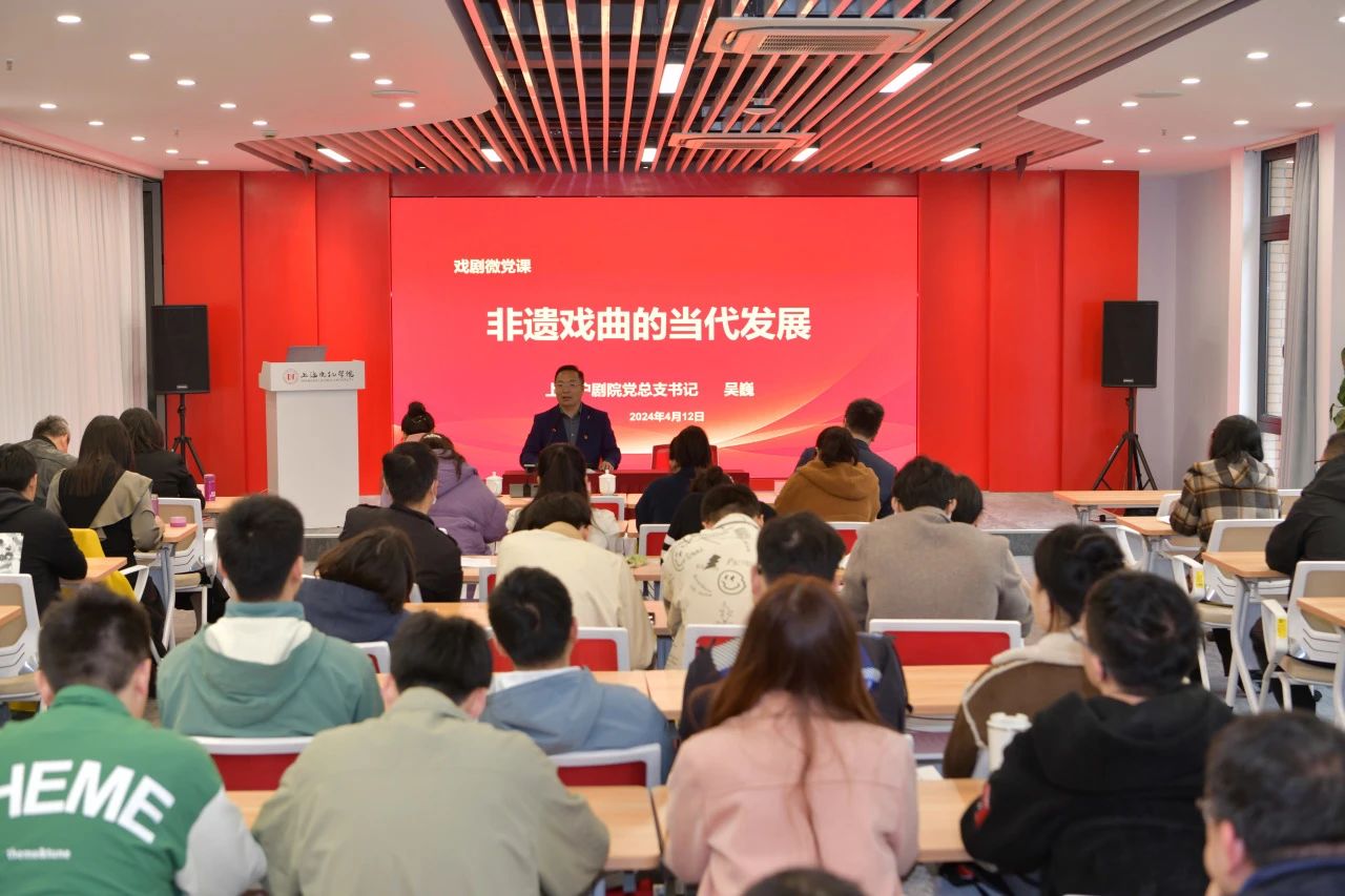 签约仪式后,上海沪剧院党总支书记吴巍为师生们讲述微党课《非遗戏曲的当代发展》。