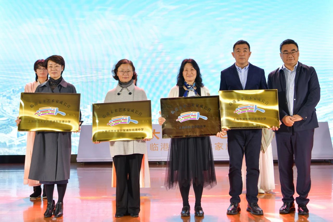 上海临港教育发展基金会秘书处为临港实验中学、上师大附属浦东临港中学、上师范大附属临港小学和泥城小学四个成长营基地授牌。