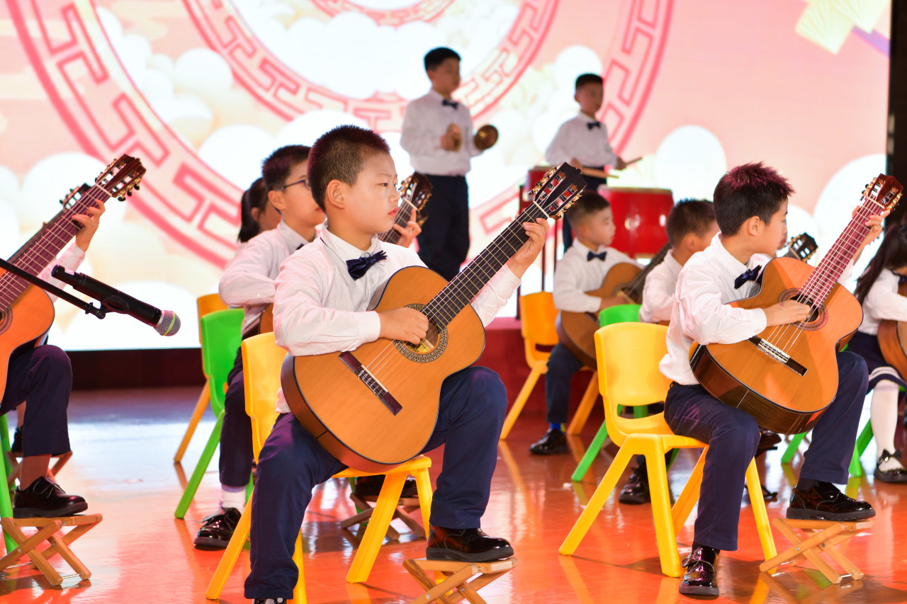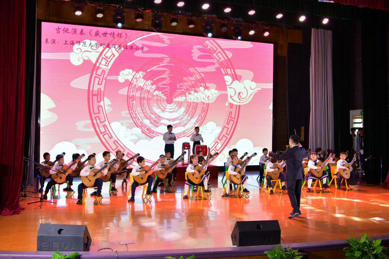 上师大临港附小学生带来吉他演奏《盛世情怀》