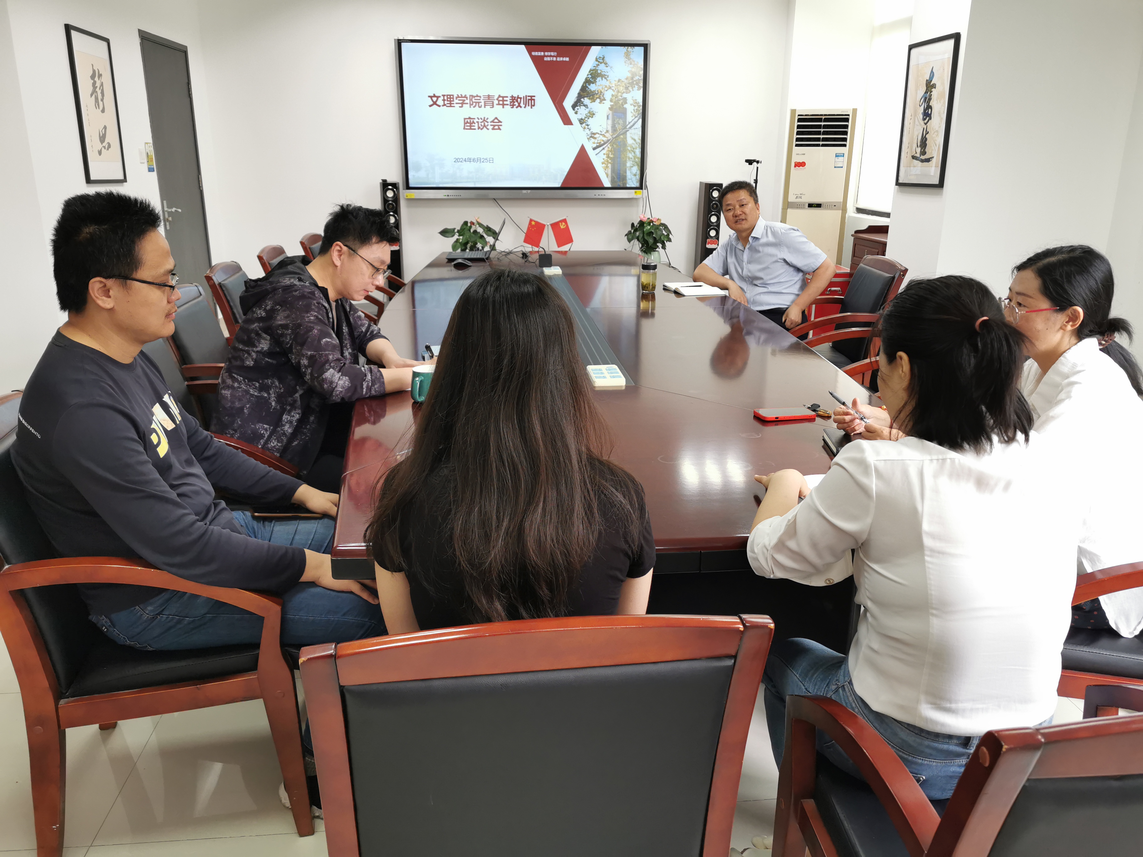 王相虎向青年教师介绍了学院情况和学院申报硕士点的准备情况,并依次了解了青年教师的科研、教学和首聘期任务完成情况。青年教师就目前工作进展和遇到问题作了交流发言。