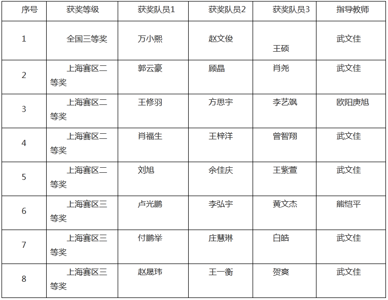 近日,2024年“华为杯”第二十一届中国研究生数学建模竞赛及全国大学生数学建模竞赛成绩公布,我校研究生万小熙、赵文俊、王硕获得全国三等奖,我校本科生获得上海赛区二等奖4项、三等奖3项的佳绩。