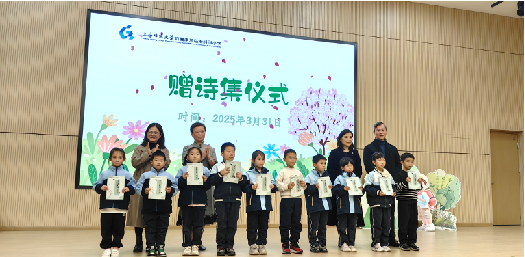 舞台上,文艺演出高潮迭起。小学杨丽莉校长的开场致辞满含对孩子们成长的期许与对美育的执着追求,董雪静教授的讲话则进一步强调了美育在成长旅程中的关键意义,为活动添上厚重的教育底色。随后,老师们一起为小作者们颁发了诗集。小学生们活力四射,《青春快出发》跳出少年朝气,《我把春天诵给你听》诵出春日浪漫,《春风》舞出灵动轻盈,纯真的表演展现着临港少年蓬勃的精神风貌。而beat365唯一官方网站大学生们带来的民乐《上春山》演奏弦动之间,古韵悠扬,将传统民乐之美播撒进孩子们心间,搭建起跨越年龄的艺术桥梁。