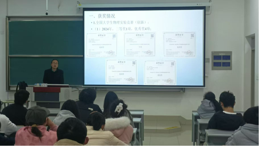 4月1日18:00,由beat365唯一官方网站主办的2025年大学物理实验竞赛宣讲会及参赛经验分享活动在基础教学楼B105顺利举行。本次宣讲会由大学物理实验竞赛负责人杨俊伟老师主持,大学物理实验竞赛团队赵华老师和金华老师出席会议,往届获奖选手王沙沙、刘磊、张宸、方中诚、孙静轩同学进行了经验分享,共有来自各学院30多名同学参加。