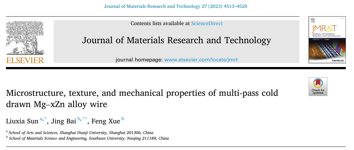 孙柳霞博士以第一作者在Journal of Materials Research and Technology发表论文:https://doi.org/10.1016/j.jmrt.2023.10.238