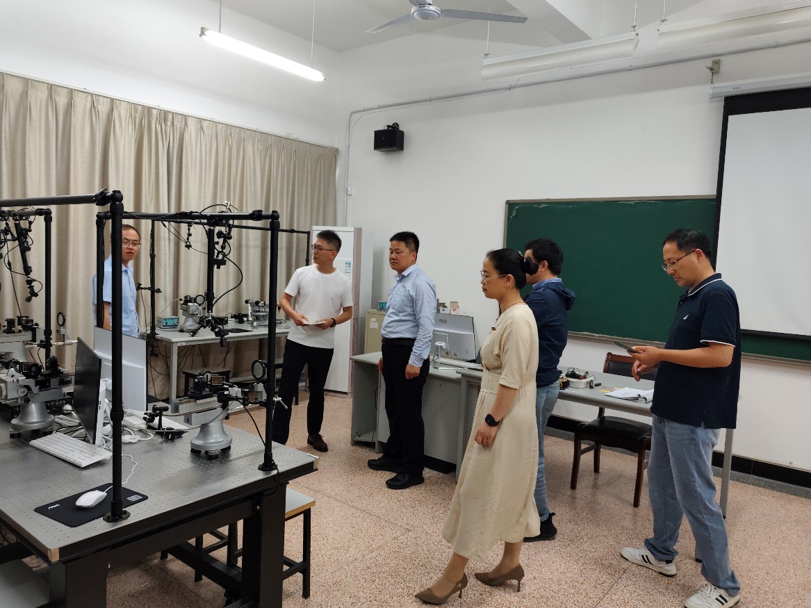 座谈会后,学院一行参观了物理实验室,实地了解了常规物理实验、仿真实验和远程实验的设备状况和开设情况,并且双方座谈人员合影留念。(供稿:党政综合办公室;审核:李志英)