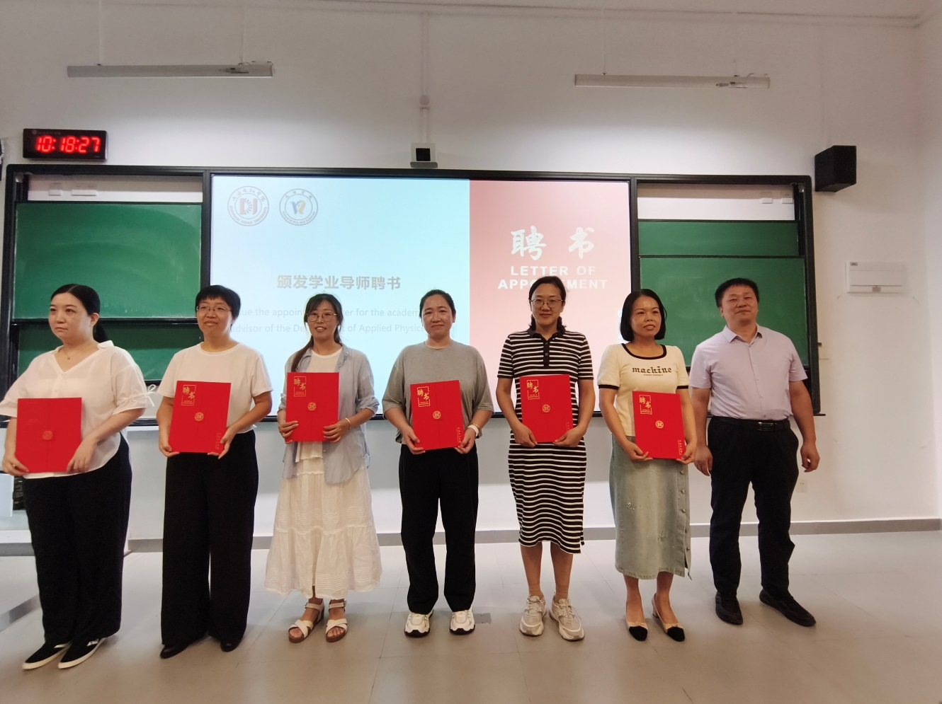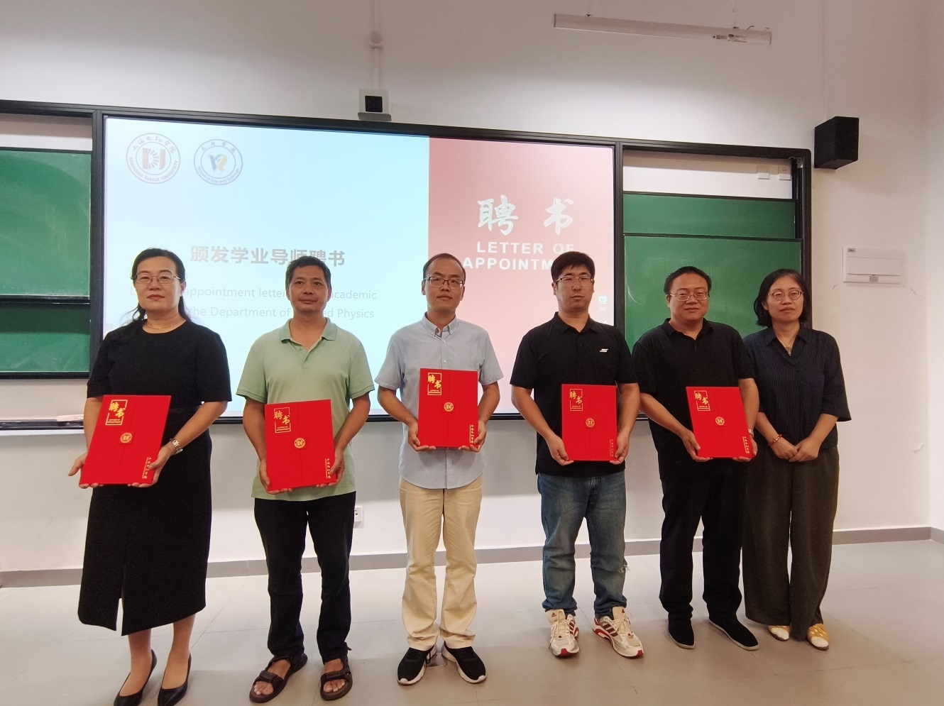 随后,大会举行了应用物理系学业导师聘书颁发仪式。 王相虎院长、李志英书记共同为张洁、刘门全、杨俊伟等十二位学业导师颁发聘书。一纸聘书,承载着一份荣誉,更是一份沉甸甸的责任。学业导师制度将为新生们的学业规划、专业发展和个人成长提供全程精准的指导。